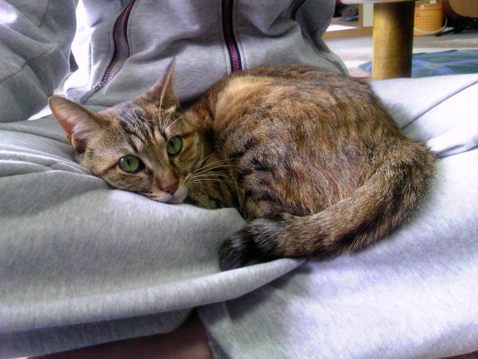 家に帰るとうちのネコが駆け寄ってきて、わたしが座るやいなや飛び乗ってきました。
